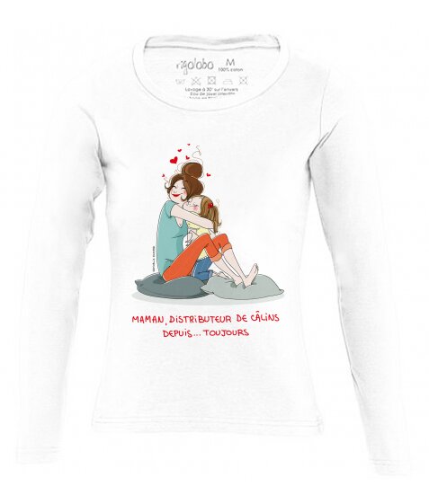 T-shirt maman manches longues "Maman distributeur de câlins depuis toujours" signé Nathalie Jomard