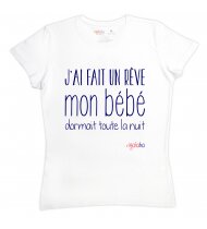 Tee-Shirt femme manches courtes, col rond fin, coupe cintrée,coupé cousu, en jersey fin. Illustration imprimée dans les fibres du textile.
