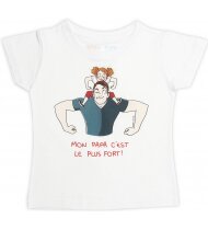 T-Shirt "Mon papa c'est le plus fort" signé Nathalie Jomard, manches longues, blanc chiné